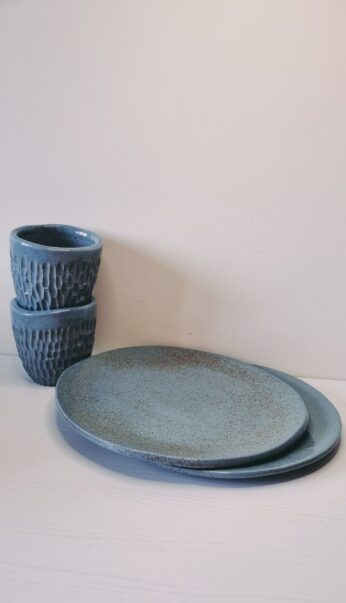 Šis keramikinis indų rinkinys dviems – tarsi švelnus „labas rytas“ jūsų stalui. Ryto šviesoje žydinčios glazūros mėlis primena tylų, dar neišsibudinusį dangų, o švelniai nelygus paviršius – pirmuosius pėdsakus ant rasotos žolės. Ji kviečia sulėtėti, pastebėti ir mėgautis.