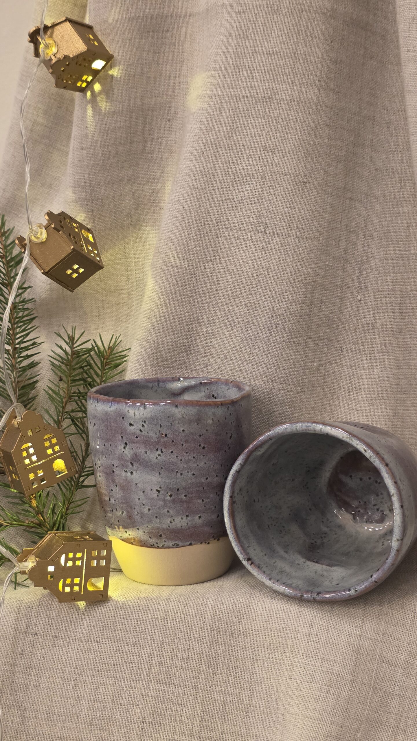 „Pilkas dangus“ – tai rankų darbo keramikos rinkinys, kuriame susitinka žemiškas natūralumas ir tylus jaukumas. Švelniai pilkšvai violetinė glazūra su smulkiais taškeliais primena apsiniaukusį dangų, o šviesus molio pagrindas suteikia šilumos ir balanso. Puodeliai maloniai gula į delnus ir kviečia dalintis – arbata, kava ar tiesiog buvimu kartu.