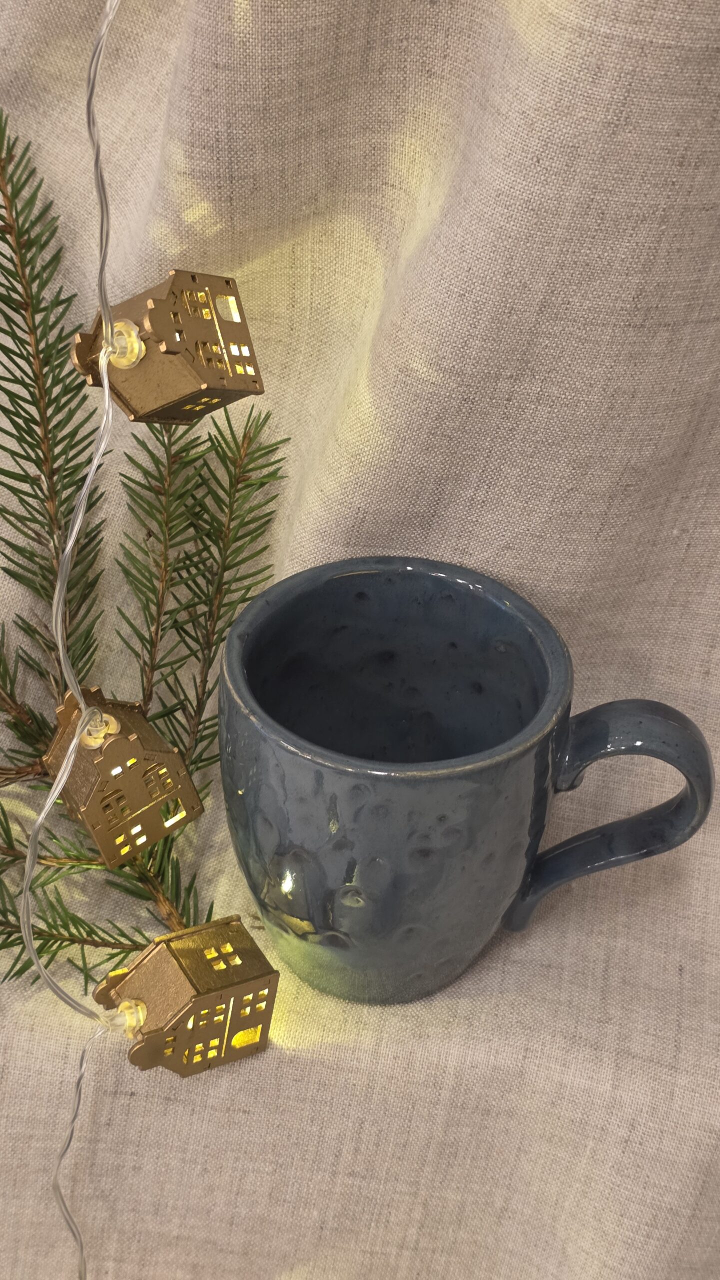 „Vakaro Tyluma“ – rankų darbo keramikinis puodelis, įkvėptas ramios sutemų akimirkos, kai namai nurimsta, o mintys sulėtėja. Gilūs melsvai žali atspalviai primena miško pavėsį ir ežero gelmę, o reljefiška tekstūra suteikia puodeliui gyvybės ir natūralumo. Tai puodelis lėtiems vakarams, kai arbata ar kava tampa ritualu, o ne skuba.