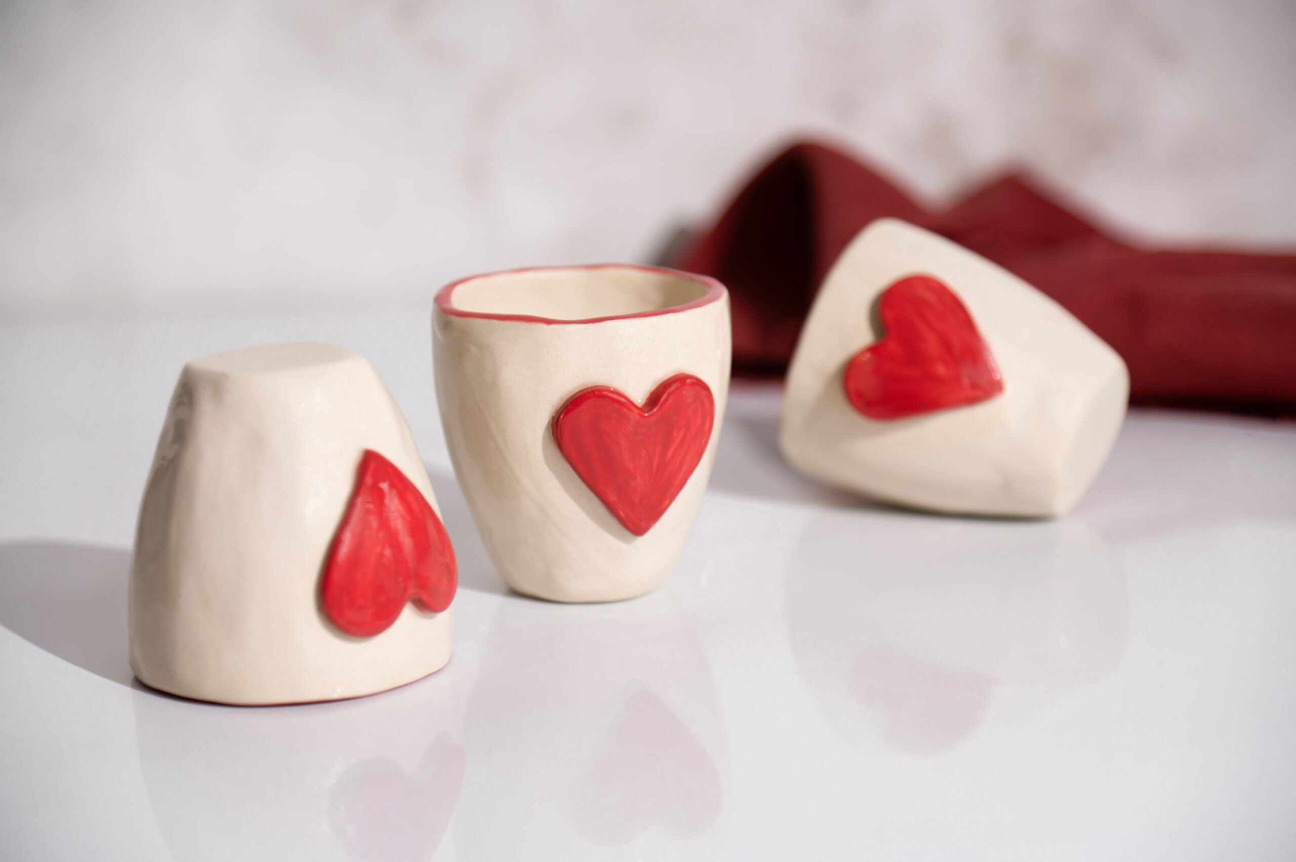 Kai rankose laikai šį molinį puodelį, jauti ne tik šilumą iš vidaus, bet ir į širdį – tiesiogine prasme. Ant puodelio nutūpusi raudona širdelė primena apie mažus gestus, kurie kuria jaukumą. Kiekvienas puodelis yra rankų darbo, todėl unikalus – kaip ir meilė, kuri slypi paprastume.